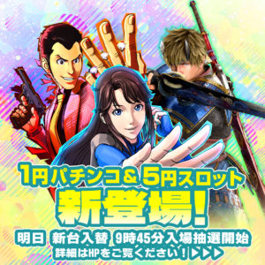 Previous Next アセット 8 アセット 4 アセット 12 アセット 23 11/18:新台登場! 2025年11月11日 お待たせしました!今回の新台入替はこちら!存分にお 続きを読む » 11/17:低貸しコーナー新登場! 2025年11月10日 低貸しがさらに楽しくなりました! これを機に普段遊 続きを読む » 11/5:新台登場! 2025年10月29日 お待たせしました!今回の新台入替はこちら!存分にお 続きを読む » ニュートーキョー青木島店 営業時間 10:00 〜 22:45 台数 4円パチンコ 192台 1円パチンコ 224台 20円+スロット 192台 5円+スロット 96台 定休日 年中無休 住所 長野県長野市青木島町大塚1027-3 Google mapで開く サービス情報 設置機種 / Machine information■■P-WORLD機種情報からご確認下さい■■ パチンコ スロット 台データ情報 / Data information サービス案内 / Service information